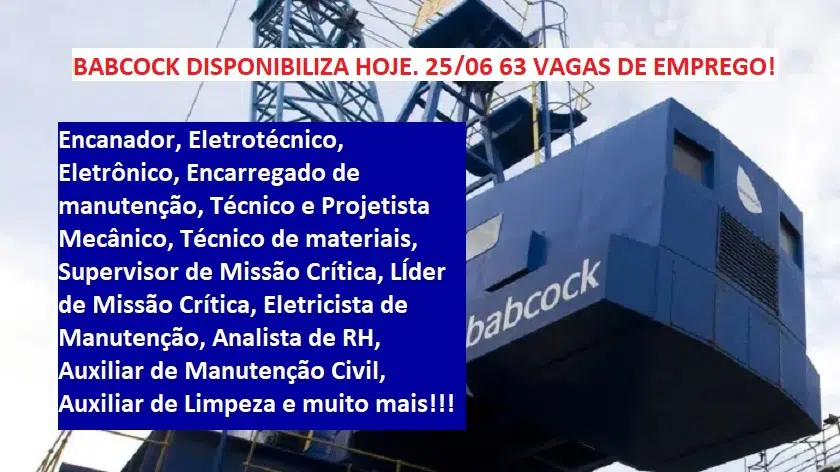 A multinacional Babcock International Group, abre processo seletivo para 63 diferentes cargos nesta terça-feira, 25 de junho.