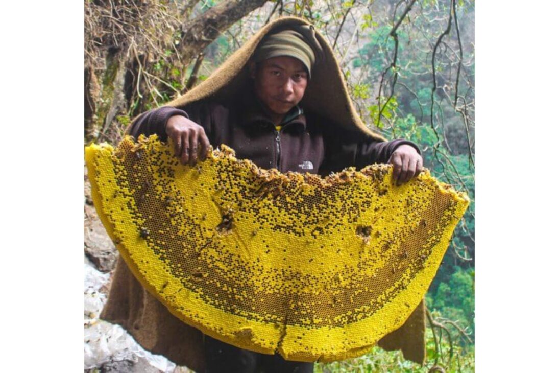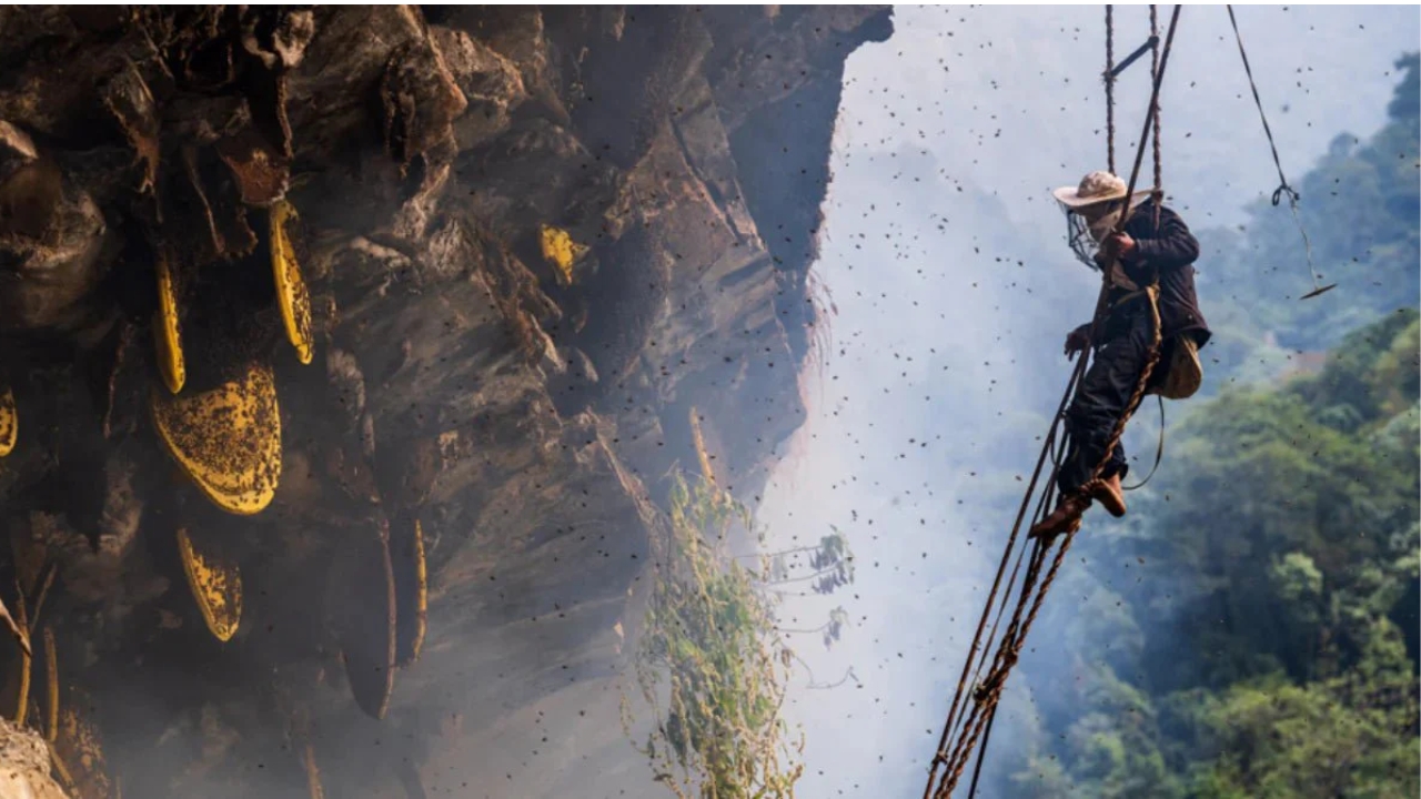 No coração da região de Kaski, os Gurung se reúnem duas vezes ao ano para uma das tarefas mais perigosas que um ser humano pode executar. O ritual começa antes do amanhecer, quando os moradores locais caminham até as encostas íngremes onde vivem as colmeias da Apis laboriosa, a maior espécie de abelha do mundo, capaz de medir mais de 3 centímetros.