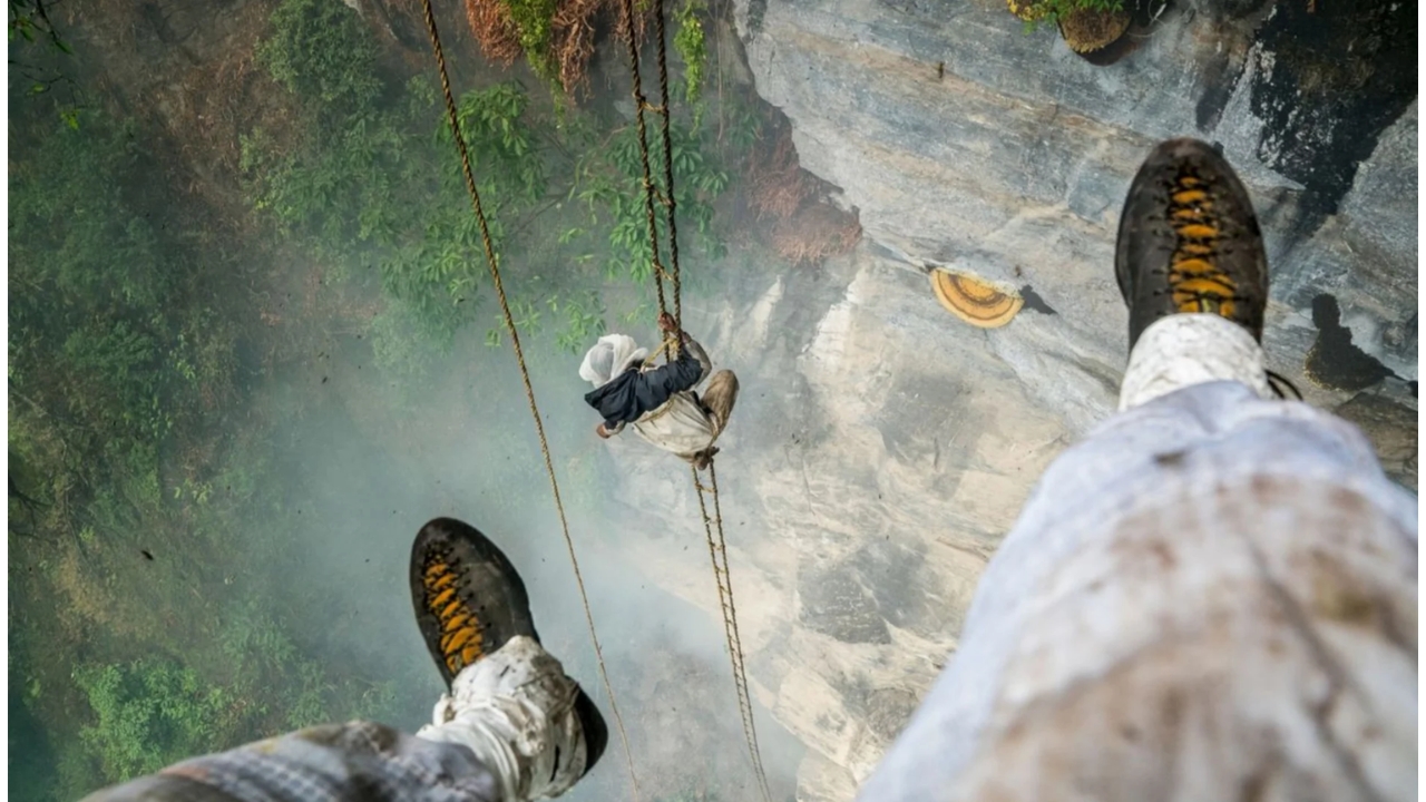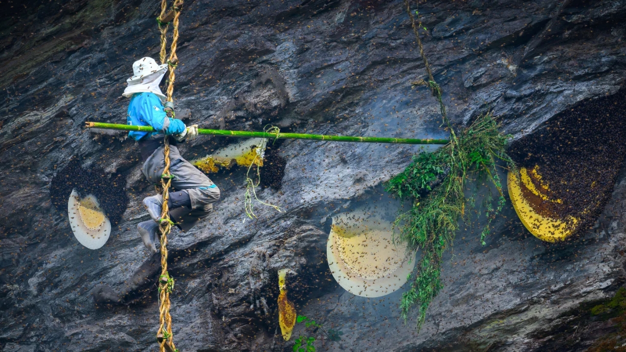 No Himalaia, caçadores Gurung escalam penhascos de 90 metros para colher o mel mais raro do mundo. A tradição envolve risco extremo, abelhas gigantes e um ritual ancestral único