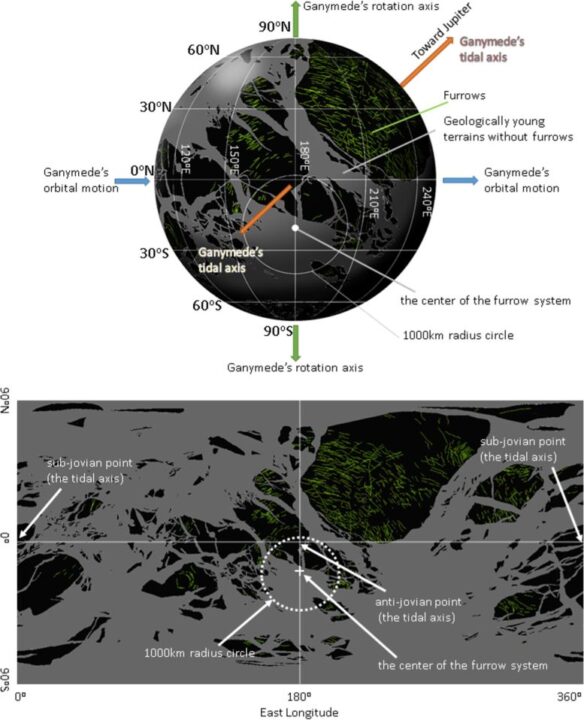 Esses sulcos, que cobrem uma parte significativa da lua, são vestígios de seu passado turbulento e de grandes colisões. Através de simulações computacionais, Hirata e sua equipe foram capazes de determinar que o impacto de 4 bilhões de anos atrás foi tão poderoso que causou uma reorientação do eixo de Ganimedes.