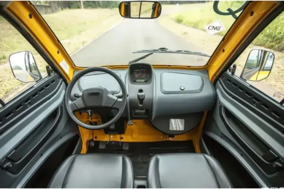O motor é um pequeno monocilíndrico de 217 cm³, com 20 cavalos de potência, instalado na traseira e conectado a um câmbio automatizado de cinco marchas. A velocidade máxima? 70 km/h — mais do que suficiente para o uso urbano. E o principal destaque: um consumo declarado de incríveis 35 km/l com gasolina.