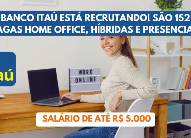 O Itaú Unibanco, uma das instituições financeiras mais respeitadas da América Latina, está com 152 vagas home office, híbridas e presenciais abertas em diversas áreas para profissionais de diferentes níveis de experiência. As vagas de emprego estão distribuídas em várias cidades do Brasil e incluem benefícios atrativos, como plano de saúde, auxílio-creche, previdência privada e seguro de vida. Continue lendo e veja como se candidatar a essas vagas no Itaú.