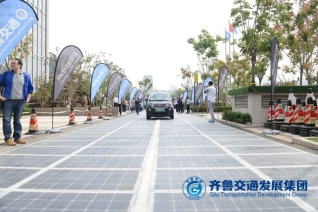 Um exemplo citado é um trecho piloto na cidade de Jinan, no leste da China. Ali foi construída uma rodovia inteligente com aproximadamente 1.080 metros, usando painéis solares embutidos sob uma camada de concreto transparente.