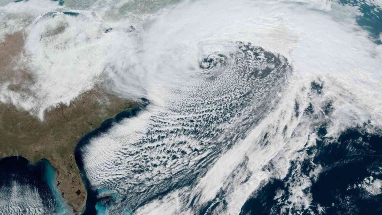Imagens do satélite GOES-19 mostram núcleo do ciclone bomba