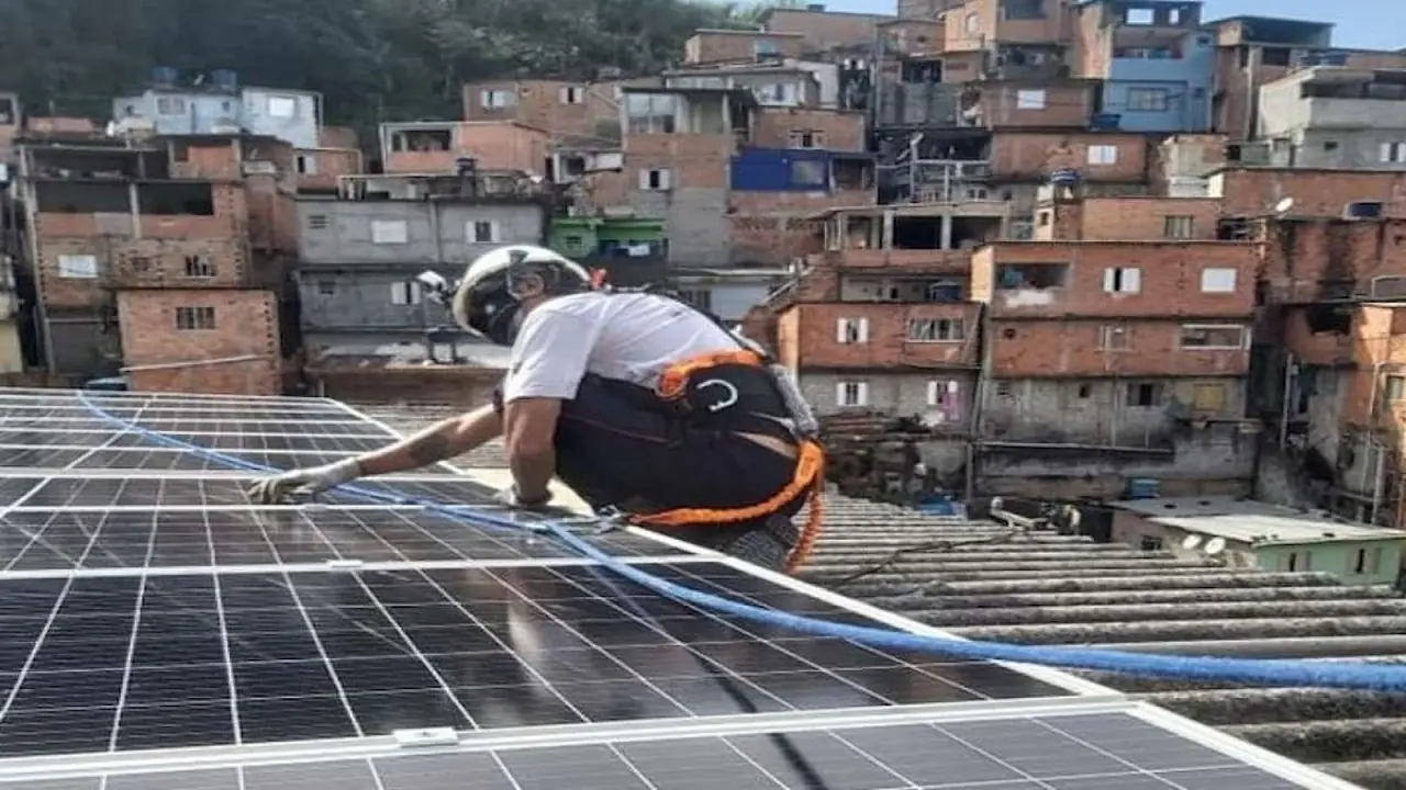 Instalação das placas solares na Favela Marte, primeira comunidade da América Latina a ser abastecida com energia solar