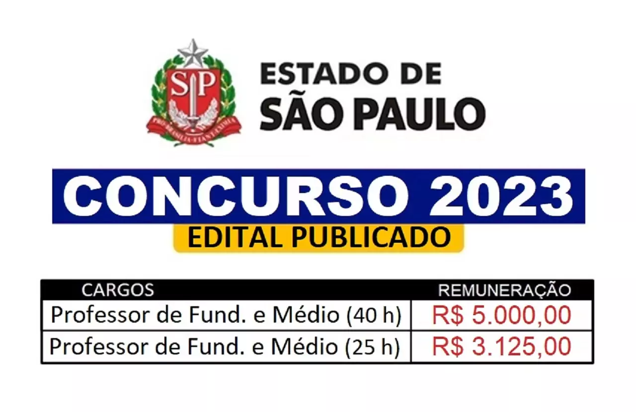 A Secretaria de Educação do Estado de São Paulo anunciou na última semana um novo concurso público que deve atrair olhares de vários concurseiros, visto que o certame oferece 15 mil vagas efetivas em São Paulo. No total são 10.742 oportunidades abertas no concurso para professores com Jornada Ampliada de Trabalho Docente, 40 horas por semana e salários que podem chegar a R$ 5 mil. As 4.258 vagas efetivas restantes são para Jornada Completa de Trabalho Docente 25 horas por semana com salários de R$ 3.125.
