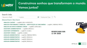 Confira a seguir as vagas de emprego oferecidas pela líder da construção civil MRV Engenharia.