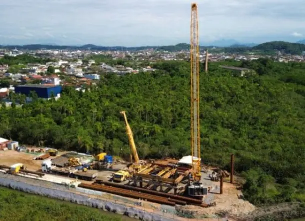 A construção da Ponte Joinville, que ligará as zonas Sul e Leste da cidade, entrou em uma nova fase com a instalação do cantitravel, um equipamento de grande porte usado em obras portuárias. O avanço marca uma etapa importante da obra, ao permitir a cravação de estacas com menor impacto ambiental e maior precisão técnica.
