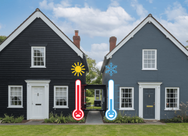 Durante seus testes, Doucet descobriu que casas pintadas de branco permaneciam até 7ºC mais frescas que as pretas no verão, mas também até 4ºC mais frias no inverno.