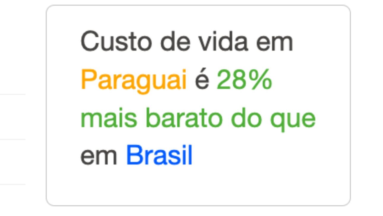 Além disso, o custo de vida é um dos mais atrativos do continente. Segundo dados do portal Expatistan, viver no Paraguai pode ser até 28% mais barato do que no Brasil em determinados indicadores. Embora itens específicos, como um almoço em regiões nobres, possam custar 35% a mais, o Índice Big Mac aponta que o sanduíche é 28% mais barato no Paraguai.