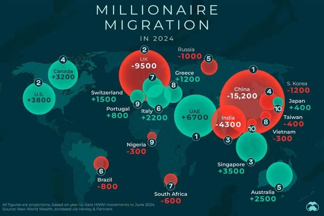 A Outra Face da Moeda: Os Países que Mais Perdem Milionários