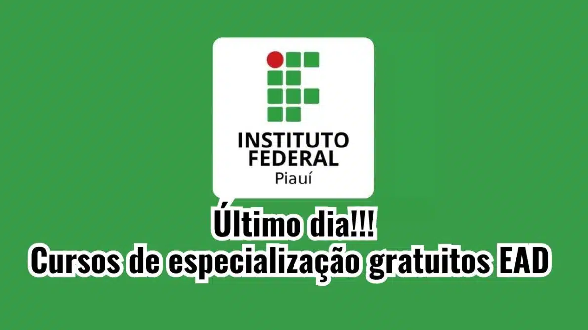 Hoje é o último dia! As inscrições para os cursos de especialização gratuitos EAD do IFPI se encerram hoje, 22 de julho. O Instituto Federal de Educação, Ciência e Tecnologia do Piauí (IFPI) está com vagas abertas para diversas especializações, oferecidas através do programa Universidade Aberta do Brasil (UAB).