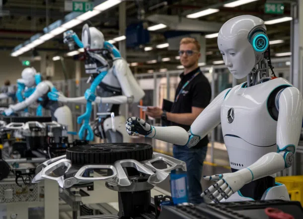 A Mercedes começou a usar robôs humanoides, representando um avanço significativo a um futuro no qual robôs poderão dividir o ambiente com trabalhadores humanos de forma mais eficiente e natural.