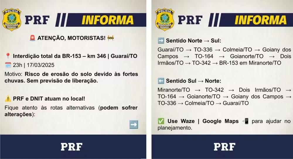 A PRF recomenda que os condutores planejem suas viagens com antecedência e fiquem atentos às atualizações das autoridades sobre a liberação da via.