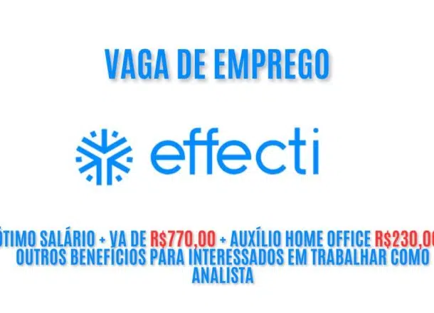 Os interessados na vaga de Analista de Sucesso do Cliente na Effecti devem se inscrever o quanto antes, enviando o currículo através do site oficial da empresa.