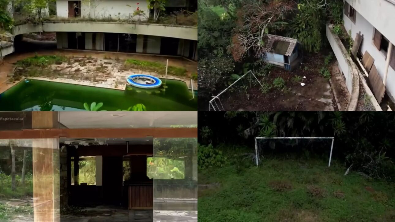 Mansão de Pelé no Guarujá combina história do futebol e desgaste do tempo, com área extensa, piscina esverdeada e quadras tomadas pelo mato, avaliação atual de R$ 8 milhões e passivo que inclui IPTU atrasado e penhora judicial registrada.