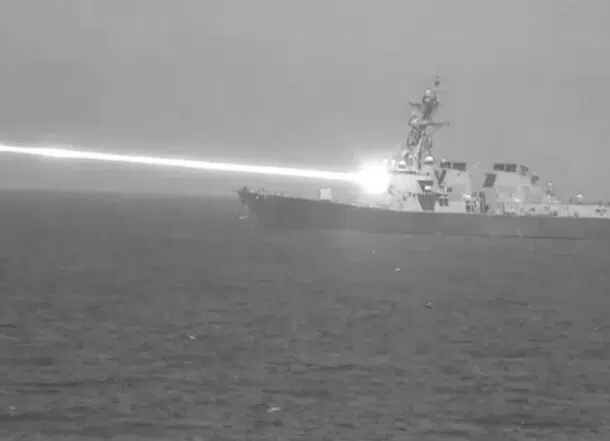 Laser da Lockheed Martin, com potencial de 120 kW, neutraliza alvos aéreos e reforça a defesa naval. Nova imagem desclassificada mostra o poder da arma de energia dirigida a bordo do USS Preble.