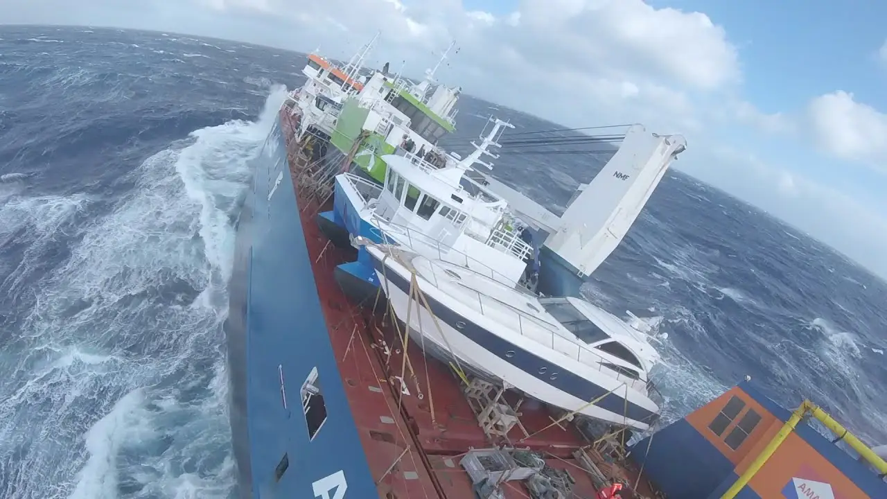 Após uma forte tempestade ter deslocado parte de sua carga por volta do meio-dia, o navio sofreu uma forte inclinação ontem (06). 12 membros da tripulação foram salvos por serviços de resgate após lançarem um pedido de socorro. Oito dos tripulantes do navio, à deriva em alto mar, foram resgatados por helicóptero e os quatro restantes foram obrigados a se jogar em alto mar, com um deles ferido.