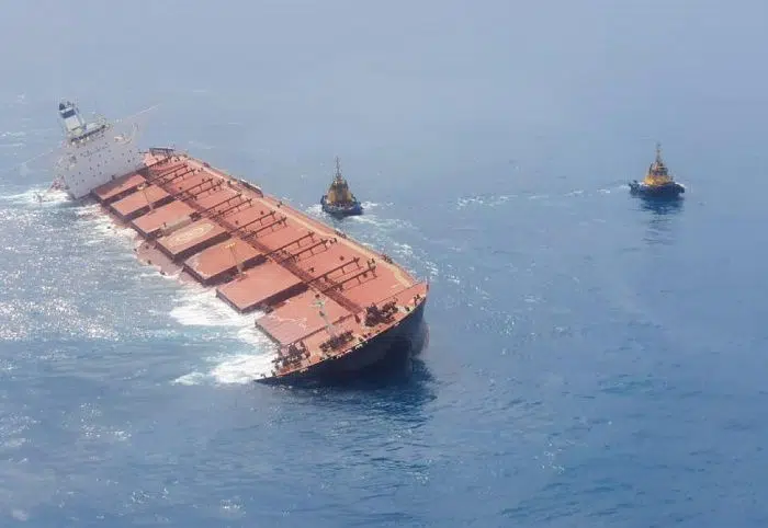 A embarcação seguia para Qingdao, na China, com minérios e sofreu um dano em seu compartimento de carga em alto-mar a 100 quilômetros da costa de São Luís, no MA. Água está entrando na embarcação.