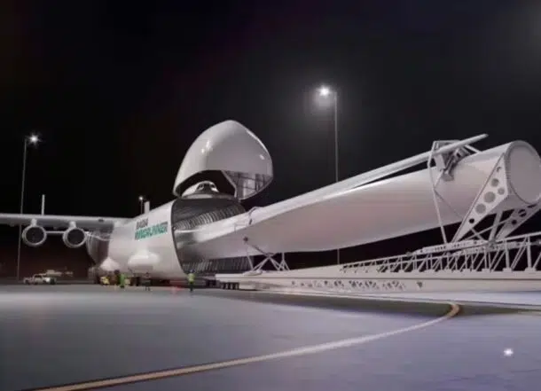 Com 108,5 metros de comprimento, o maior avião do mundo pode carregar lâminas de turbinas eólicas de até 105 metros e 26 toneladas, revolucionando a energia renovável e o transporte aéreo de cargas gigantes!