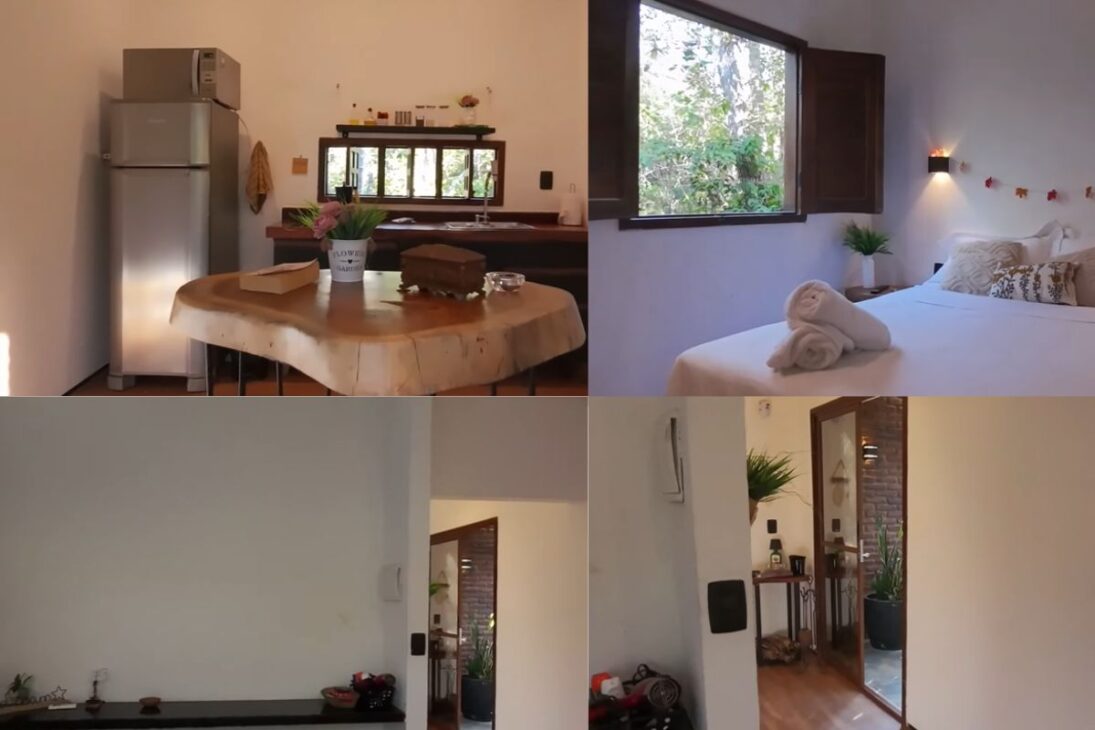 Isso funciona porque a casa foi pensada para aluguel desde o início. É pequena, fotogênica, integrada ao entorno, com varanda, boa iluminação e itens que o hóspede valoriza, como cozinha funcional, banheiro bem resolvido, área externa com fogo de chão e decoração verde.