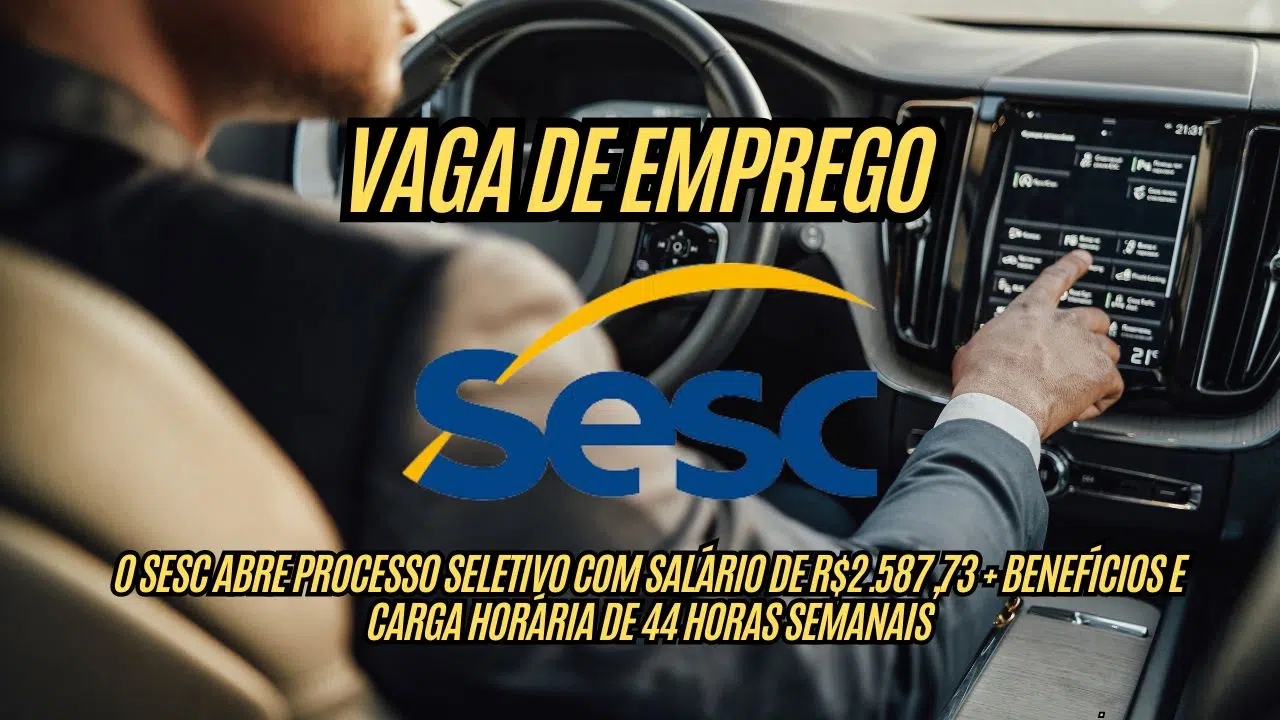 Anúncio de vaga de emprego na Sesc para Motorista, com benefícios e carga horária de 44 horas semanais.