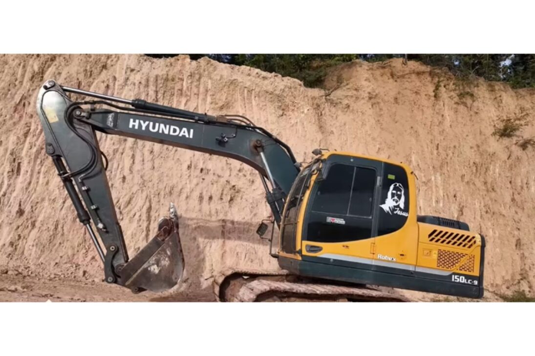A menina, Riana, tem 11 anos e comanda uma escavadeira de grande porte com uma naturalidade que desarma qualquer preconceito sobre idade e capacidade.
