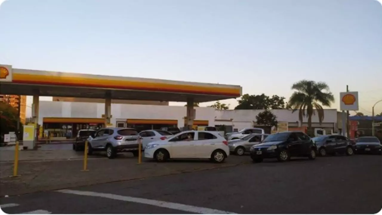 Gasolina por metade do preço na Argentina gera fila de brasileiros e venda do combustível a estrangeiros é limitada a 15 litros em Puerto Iguazú.