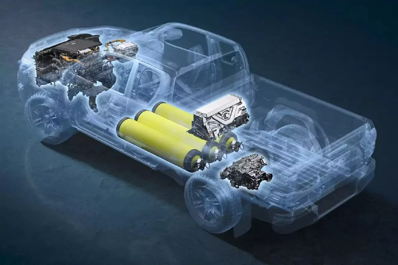A imagem da versão de célula de combustível publicada pela japonesa mostra três tanques longitudinais de hidrogênio no meio do veículo. Desta forma, parece se tratar de um esquema de propulsão traseira, onde fica alojado o motor elétrico. Com este layout, as células de combustível devem ser acomodadas na parte de trás da picape Hilux.