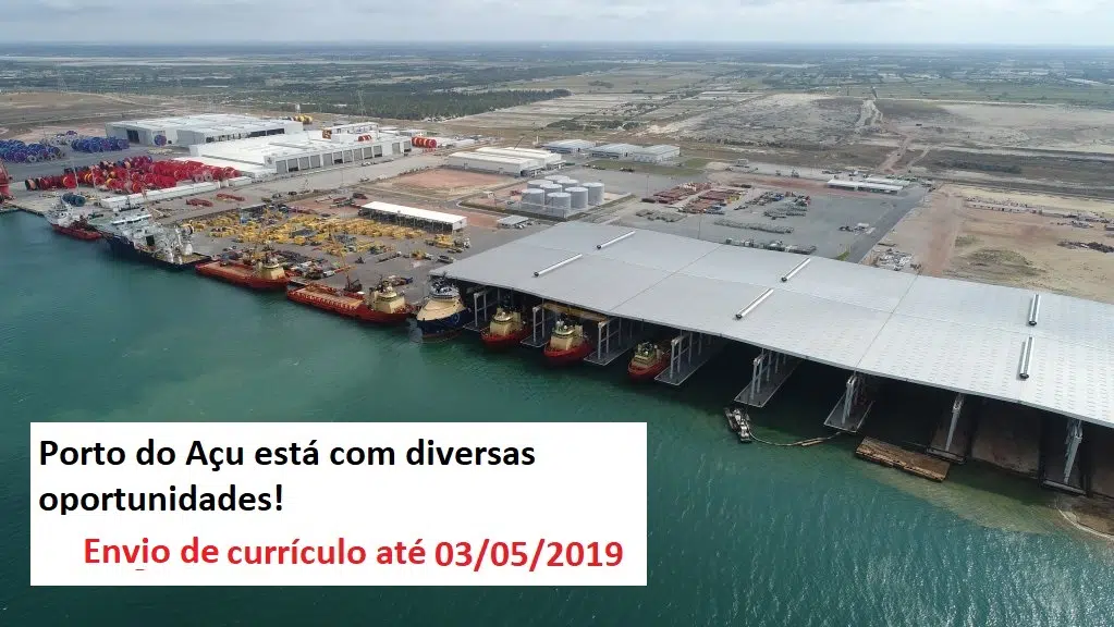 O Complexo Portuário Porto do Açu está com diversas oportunidades que foram divulgadas nesta terça, 30, pela Superintendência de Trabalho e Renda de São João da Barra. O Complexo Portuário Porto do Açu, vem absorvendo mão de obra constantemente, desta vez as vagas são para encanador industrial, mecanico montador, montador de andaimes, montador de estruturas, sinaleiro rigger, ajudante de montagem, ajudante de obras, ajudante de solda, auxiliar de movimentação de cargas e carpinteiro. Fique atento ao prazo de inscrição que será até o dia 05 de Maio de 2019.