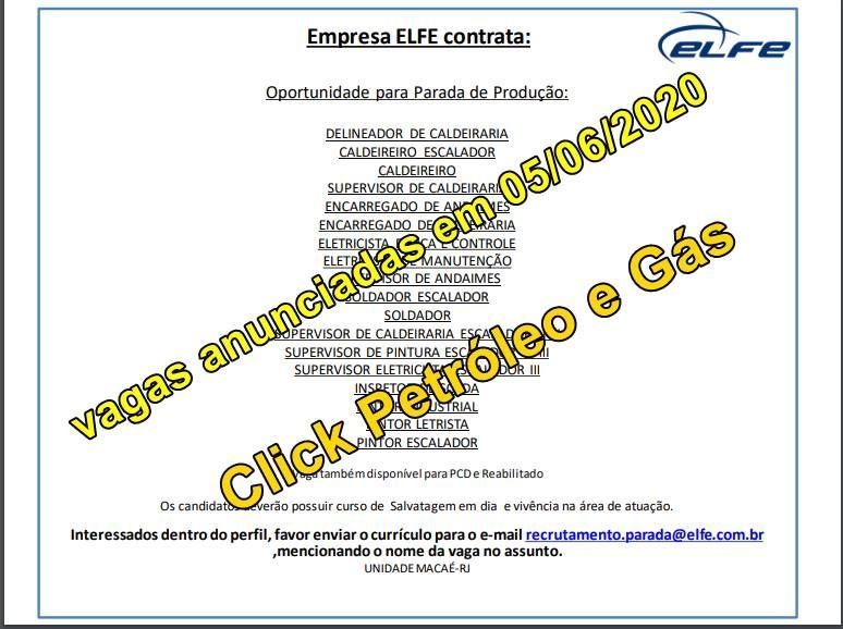 Inscrição para as vagas offshore Elfe Engenharia Macaé