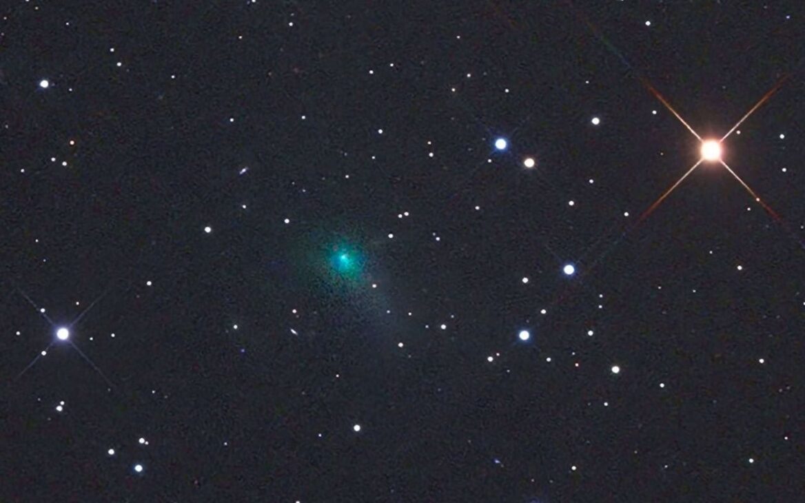 Além disso, imagens iniciais mostram uma pequena cauda e uma coma difusa esverdeada. Essa coloração é causada pela emissão de carbono diatômico, um gás liberado quando o gelo do cometa começa a sublimar.