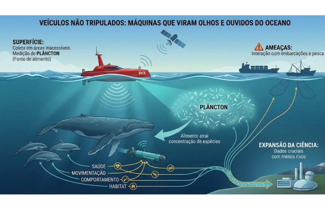 Quando a ciência consegue observar animais sem tocá-los, ouvir o oceano durante o ano inteiro, acompanhar migrações por satélite, medir condição corporal com drones e detectar presença por padrões acústicos, o resultado é um salto de capacidade.
