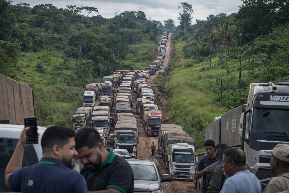 Agronegócio No Brasil, uma fila de quase 40 km de caminhões carregados de soja trava o acesso ao porto em Miritituba, expõe lama, buracos e falta de asfalto na BR-163 e transforma a safra recorde em um pesadelo logístico Noel Budeguer 24/02/2026 às 16:35