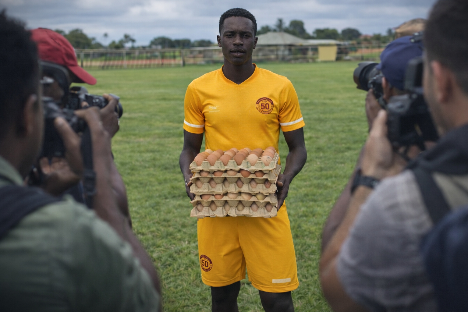 Curiosidades Um atacante zambiano foi eleito o melhor jogador do torneio de futebol, mas em vez de erguer um troféu brilhante ou posar com um cheque gigante, recebeu cinco bandejas de ovos diante das câmeras Flavia Marinho 22/02/2026 a las 18:36