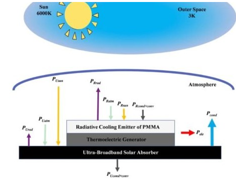 Essa nova tecnologia utiliza dois componentes principais, chamados Absorvedor Solar de Banda Ultra Larga (UBSA) e Emissor de Refrigeração Radioativa Planar (RCE), que podem ser aplicados sob um substrato flexível, útil para dispositivos portáteis que geram energia limpa. O UBSA captura a luz e aquece um lado do gerador, enquanto o RCE protege o outro lado, libertando assim o calor. Esse processo de tecnologia produz uma diferença de temperatura capaz de gerar eletricidade e energia de forma mais eficiente.