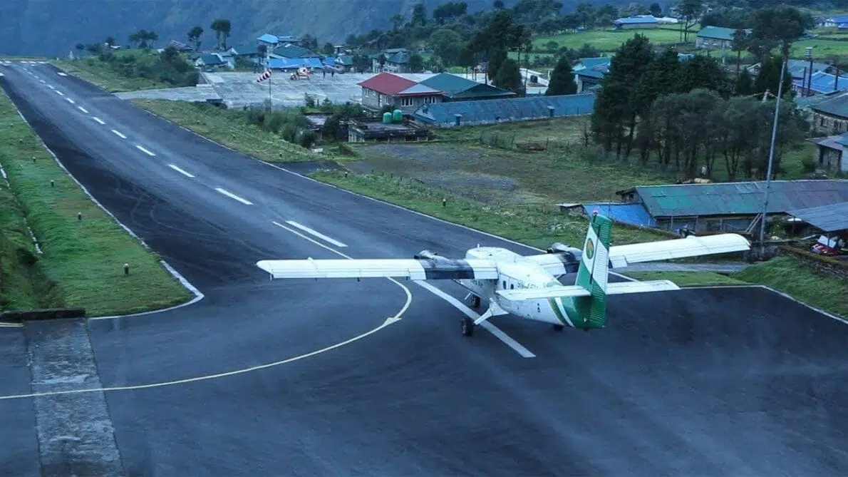 O Aeroporto de Lukla, oficialmente conhecido como Tenzing-Hillary Airport, é um dos mais extremos e perigosos do mundo, situado no Nepal. Localizado a uma altitude de 2.845 metros, é o ponto de partida para muitos dos que pretendem escalar o Monte Everest. A pista tem apenas 527 metros de comprimento e termina abruptamente em um precipício, enquanto a outra extremidade é fechada por uma montanha, criando uma das aproximações de pouso mais desafiadoras do mundo.