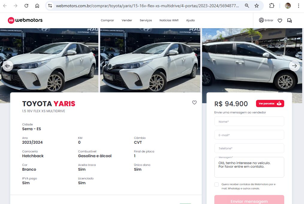 Em algumas regiões, as versões hatch do Yaris já estão esgotadas. Em Belo Horizonte, por exemplo, a Potent Car oferece as últimas unidades do Yaris hatch ano 2024/2025 por R$ 105.000 à vista.