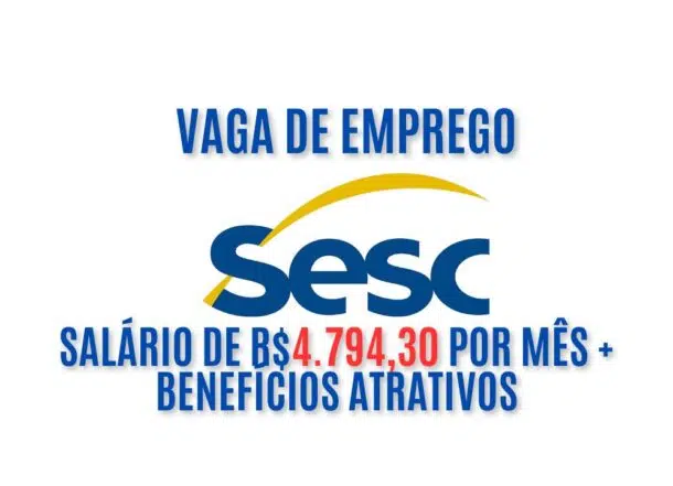 O profissional selecionado receberá um salário de R$4.794,30 por 40 horas semanais, além de benefícios como vale alimentação/refeição e descanso nas atividades do Sesc.