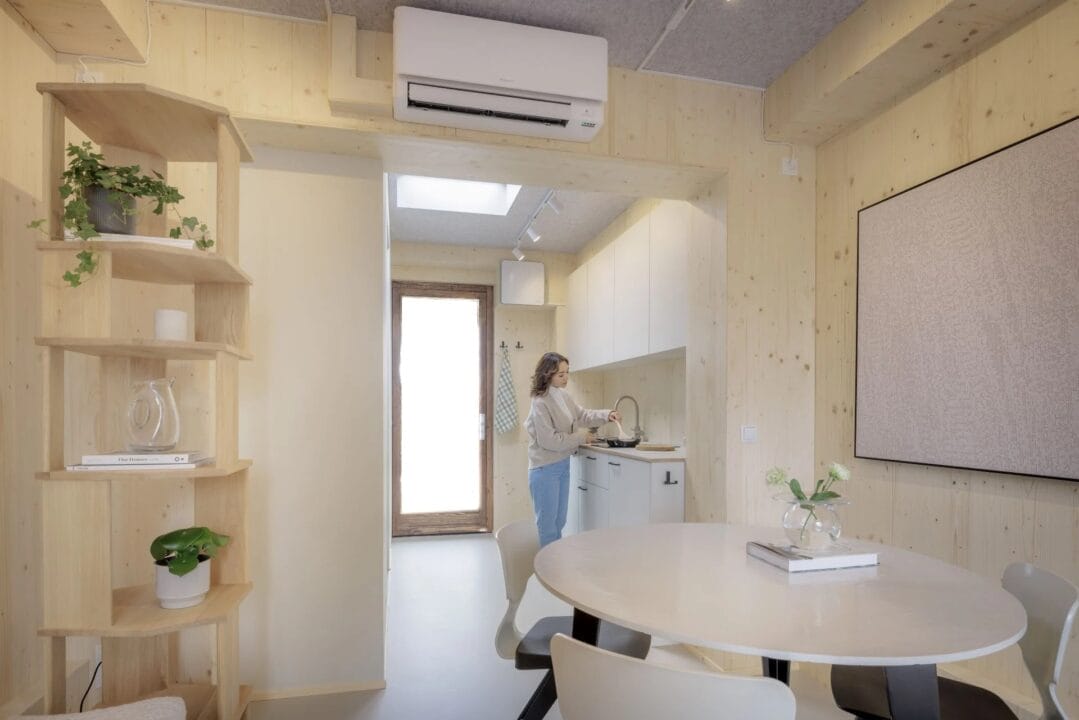 E a tecnologia não para por aí! A minicasa também é equipada com painéis solares, uma bomba de calor e um aquecedor solar, garantindo que a energia usada seja 100% renovável. Esse design inovador permite não apenas economia de espaço e energia, mas também é uma demonstração prática de como a economia circular pode transformar o setor de energia eólica.