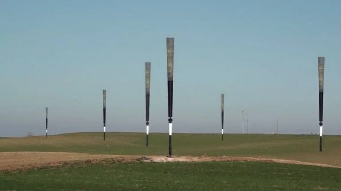 As turbinas sem pás têm três metros de altura e um cilindro com uma tampa curva fixado verticalmente com uma haste elástica. A turbina está projetada para oscilar com o vento, gerando eletricidade através da vibração.