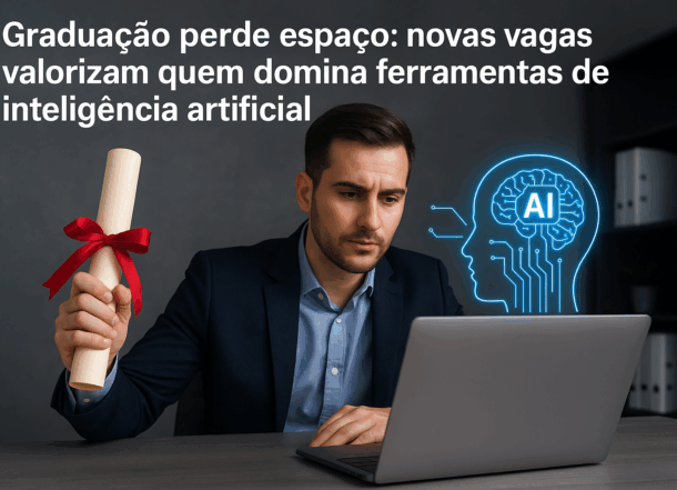 O avanço da inteligência artificial está mudando o mercado de trabalho rapidamente. Profissões antes acessíveis somente a quem tinha diploma universitário agora estão ao alcance de quem domina ferramentas digitais. Empresas têm dado prioridade a habilidades práticas, deixando títulos acadêmicos em segundo plano.